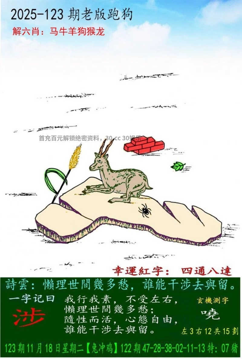 125期【独家玄机谜语】開:發00準! ≤春潮带雨晚来急,野渡无人舟自横≥ 解:野渡无人舟自横解野肖鼠虎兔龙蛇猴 综合取肖:鼠虎兔龙蛇猴 |